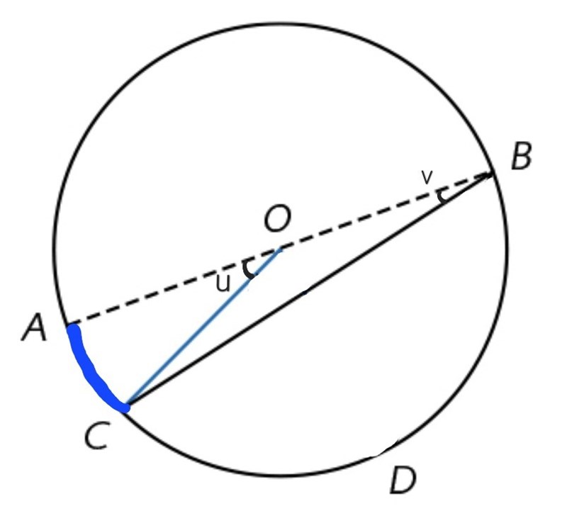 Med hjälp av den får vi följande samband:∠AOC = 2 ⋅ ABC(enligt randvinkelsatsen)