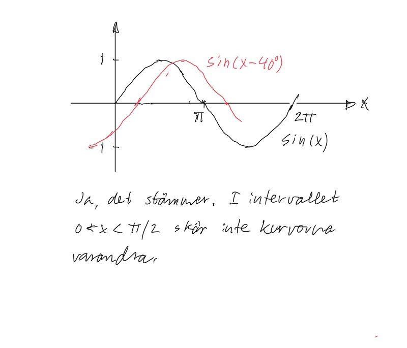 och förenklar till sin(v-40°)=sin v kan det ju inte stämma och därför saknar den lösningar , men stämmer detta?