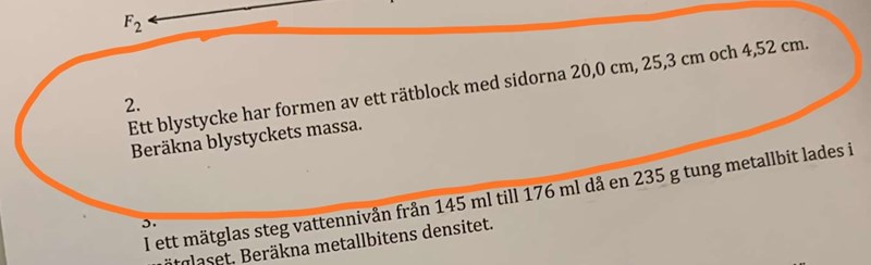 Hur ska man räkna en sådan uppgift. Jag kan inte hitta densitet för blystycke