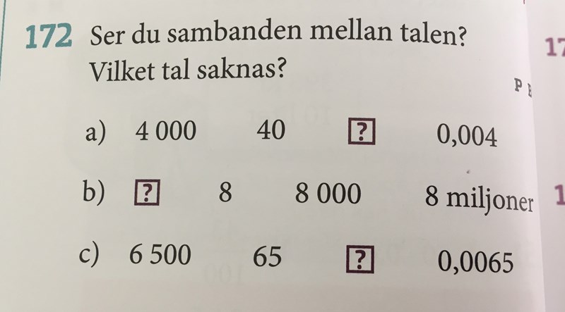 på u.p.g b) så ser man hur de multiplicerar 8 med något hela tiden. Så om 8 x ? =8000, och man använder ett annat räknesätt för att få ut boxen med ? vad ska du då använda för tal för att få reda på den?