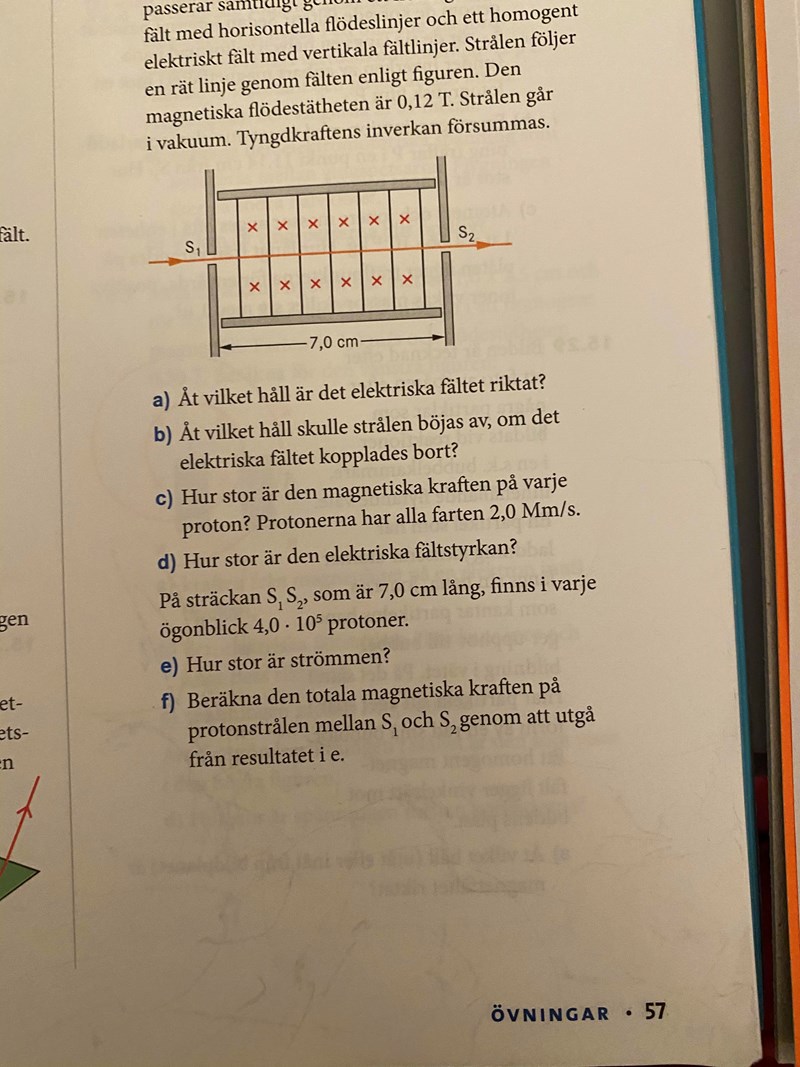 Jag vet att den magnetiska kraften är lika stor som den elektriska. Jag har dessutom 4,0*10^5 protoner. Hur ska man tänkta på uppgift d förstår inte riktigt.