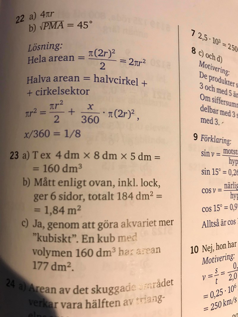 Står det verkligen preci sså i facit? Står det inte PMA=45° eller PMA=45°?