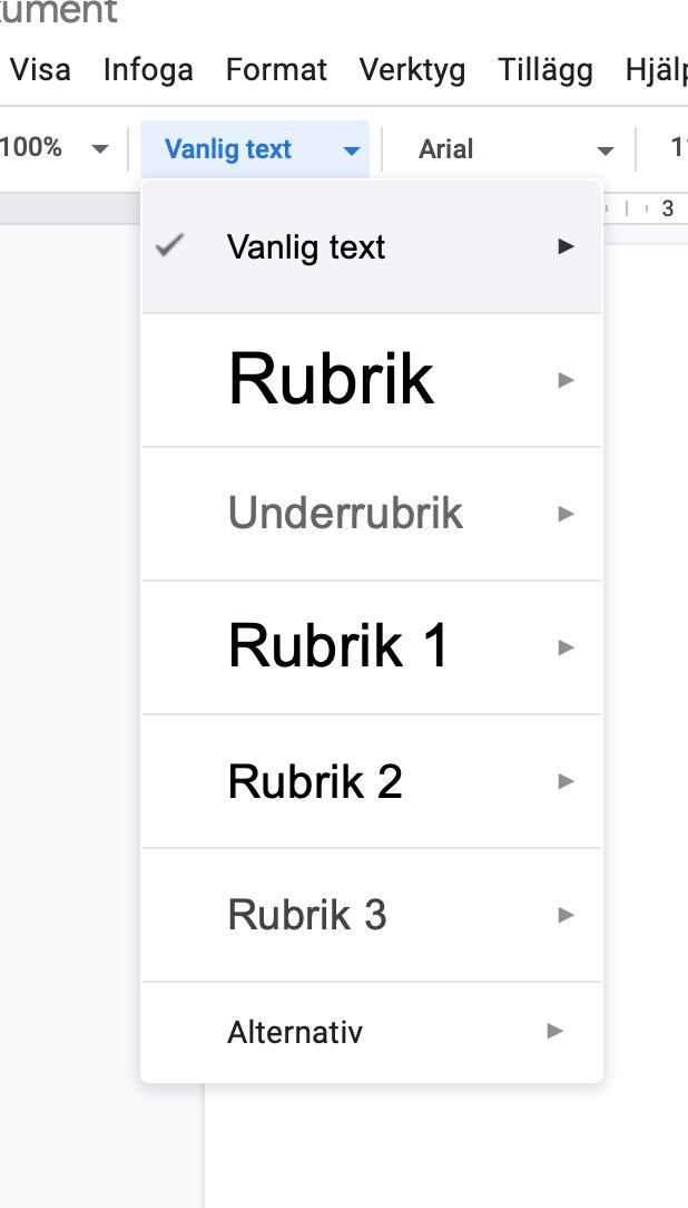 Notera att du måste ha satt dina rubriker med Drives verktyg (det fungerar inte att bara öka storleken/fetmarkera text), för att det ska fungera. :)