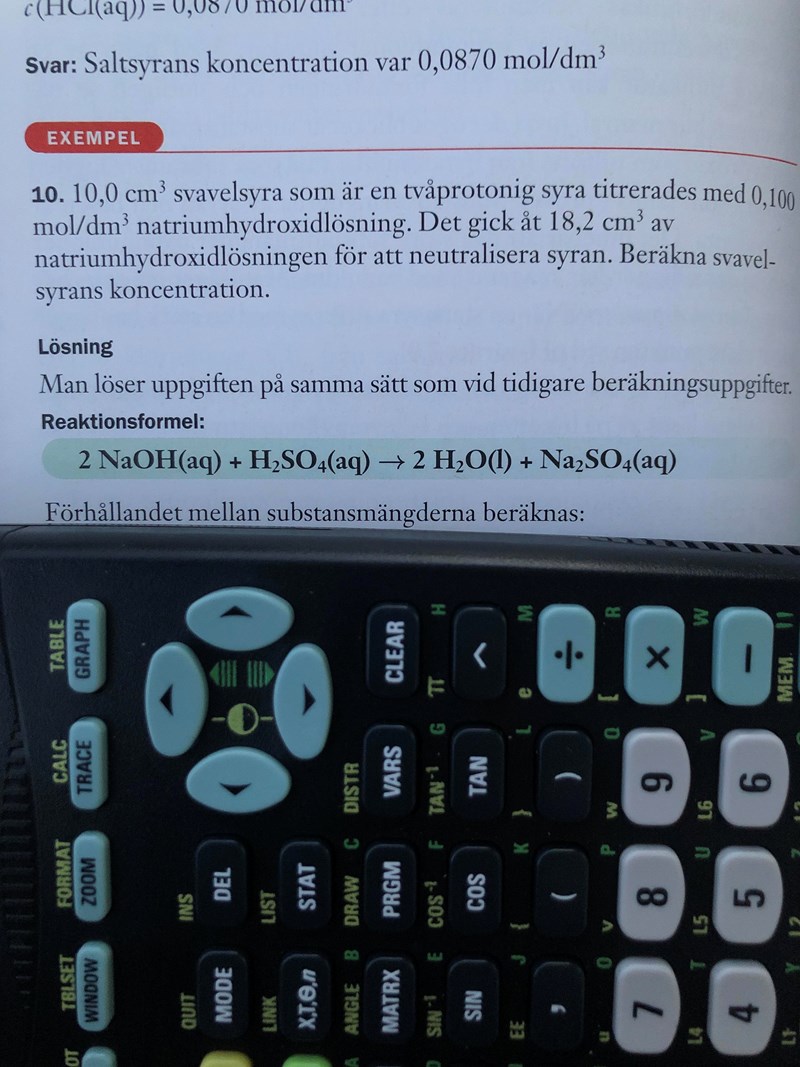 ”Det behävs 2 NaOH för att balansera 1 H2SO4. På det sättet får du också lika många natriumjoner på båda sidor. Inga väten försvinner. Det bildas vatten.”