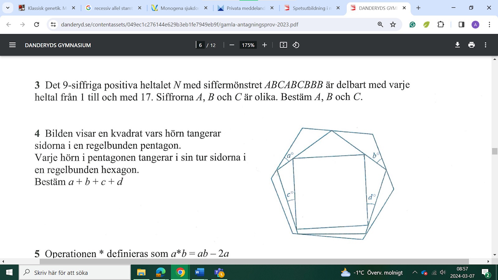 Hur skulle man kunna bestämma summan av a+b+c+d+e ?