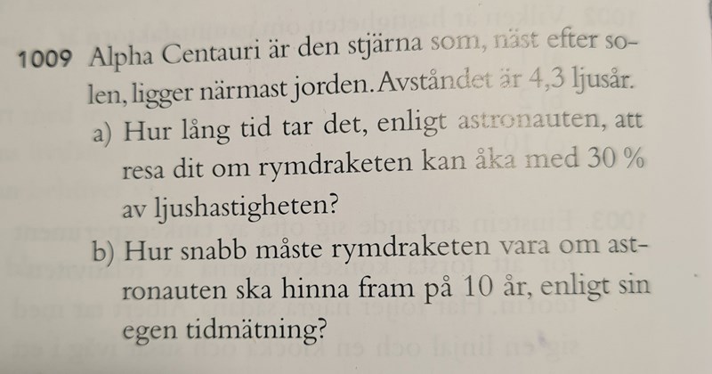Hur snabb måste rymdraketen vara om astronauten ska hinna fram på 10 år?