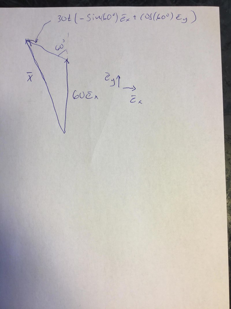 x = 60ey + 30t(-sin(60)ex + cos(60)ey). Derivera Map t.