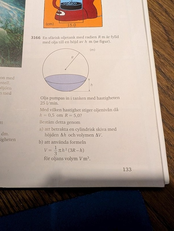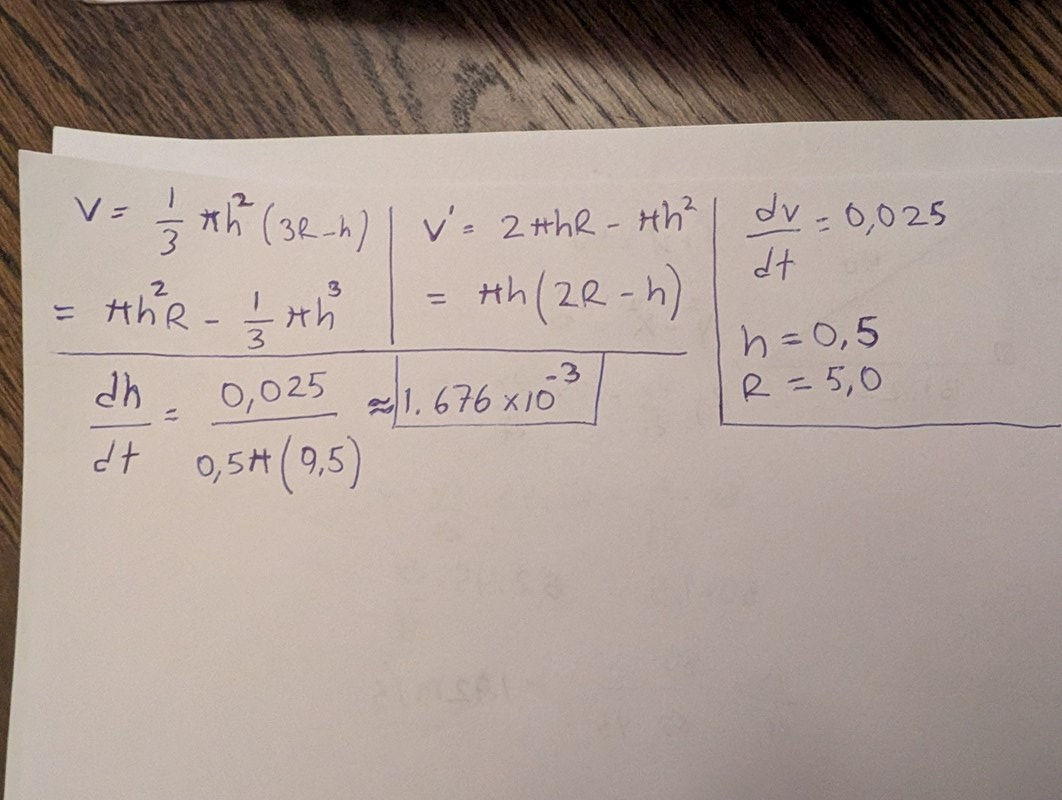 Multiplicerar ihop uttrycket för volymen, deriverar det, och sedan dividerar 0.025 med det, kanske?