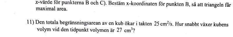 Hur snabbt växer kubens volym vid den tidpunkt volymen är 27 cm^3?