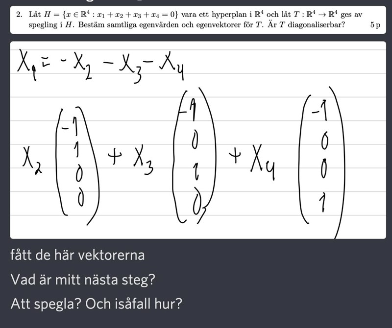 Att det är ett hyperplan stökar egentligen inte till det särskilt mycket, man speglar fortfarande med