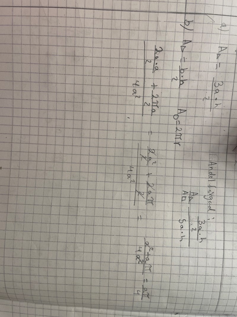 jag har börjat me att räkna hela figurens area vilket är 4a^2 sen räknade arean av en triangel och halvcirkel och adderat dom ihop delat på kvadratens area men det stämmer it me facit som visar 2+pi/8