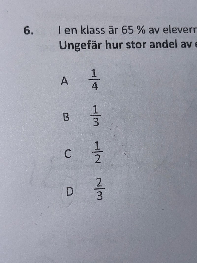 I en klass är 65% av eleverna längre än Ida, och 32% av eleverna är längre än Albert. ungefär hur stor andel av eleverna är längre än Ida men kortare än Albert.