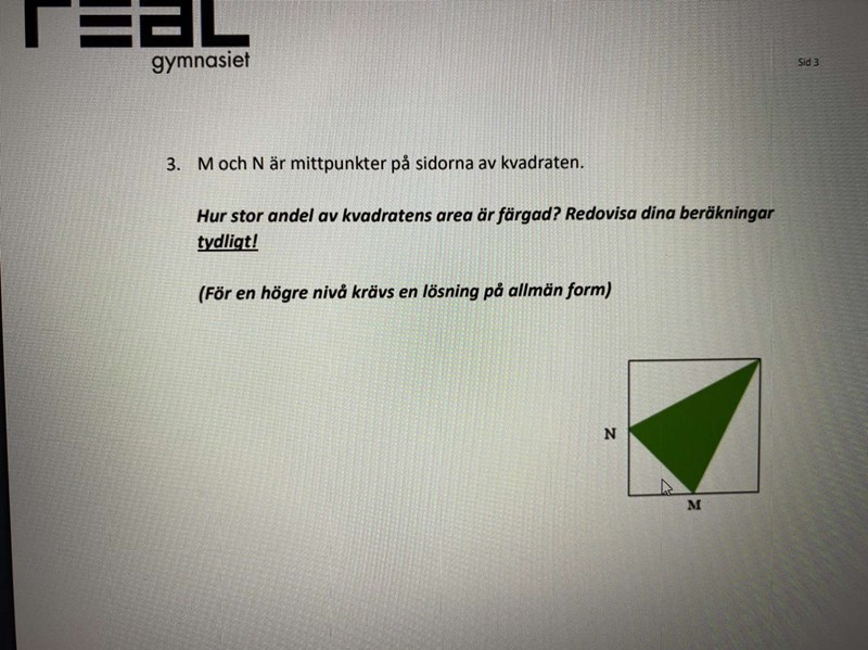Jag tänker att kvadratens area borde vara M*N, men hur går jag vidare för att ta reda på svaret som jag behöver?