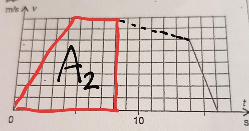 Men det går även att tolka grafen som att det inte finns någon horisontell del utritad utan vi får själva välja hur högt upp den ska vara. Då kan grafen t.ex. se ut så här, med arean . Hur hög blir maxfarten då?