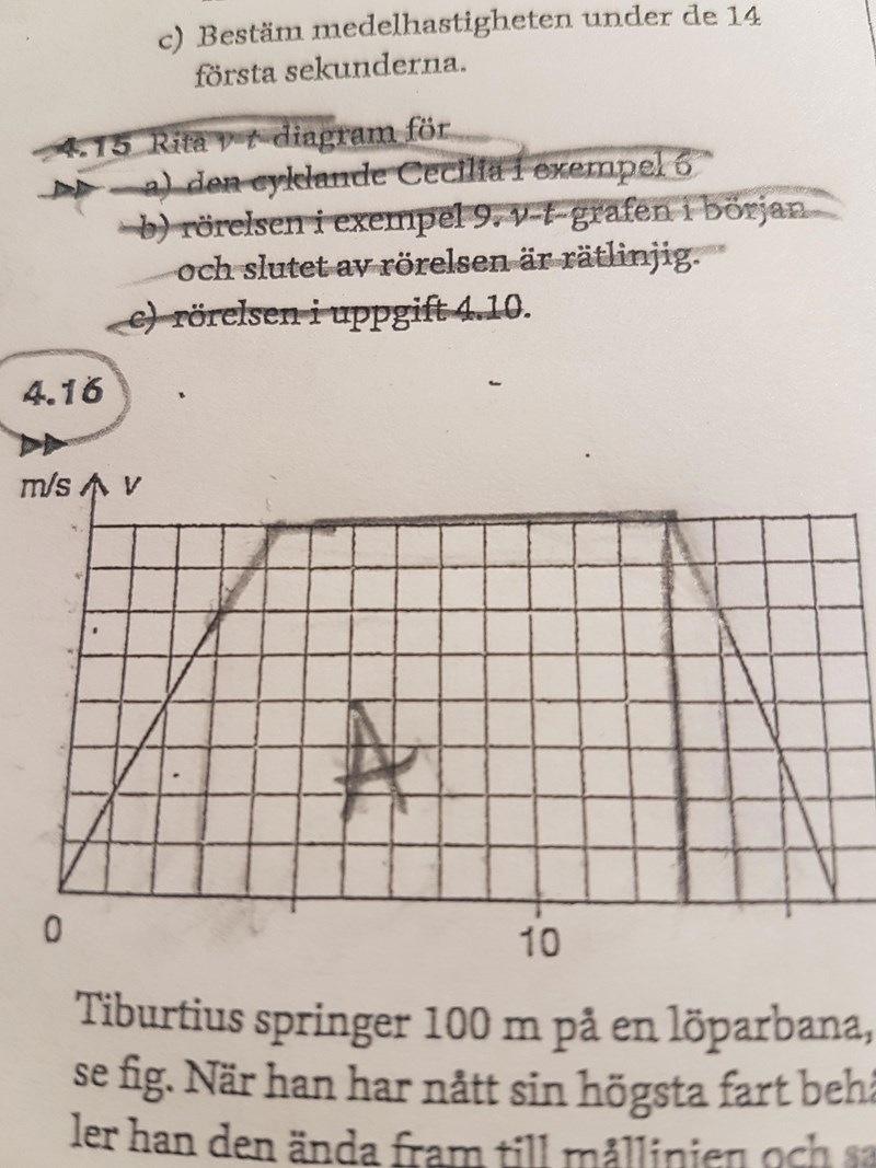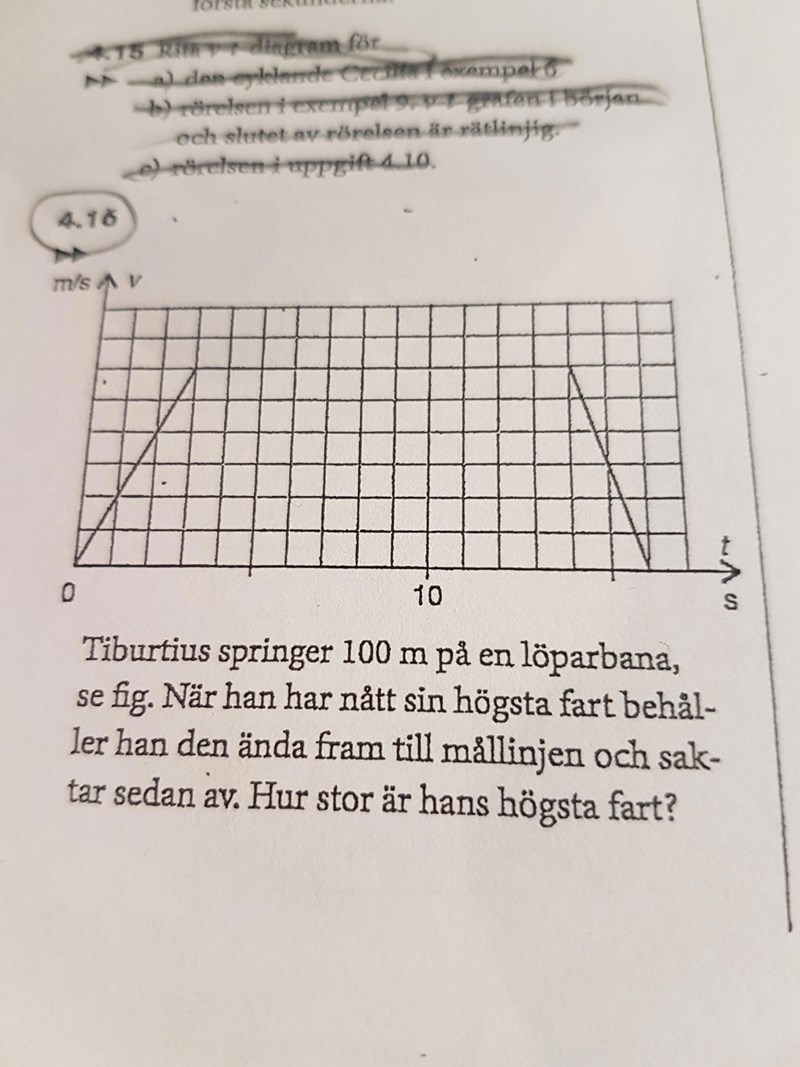 Smaragdalena skrev:Först startar Tiburtius från hastigheten (farten) 0. Han accelererar tills han når en högsta hastighet (fart), som du kan läsa av i diagrammet.