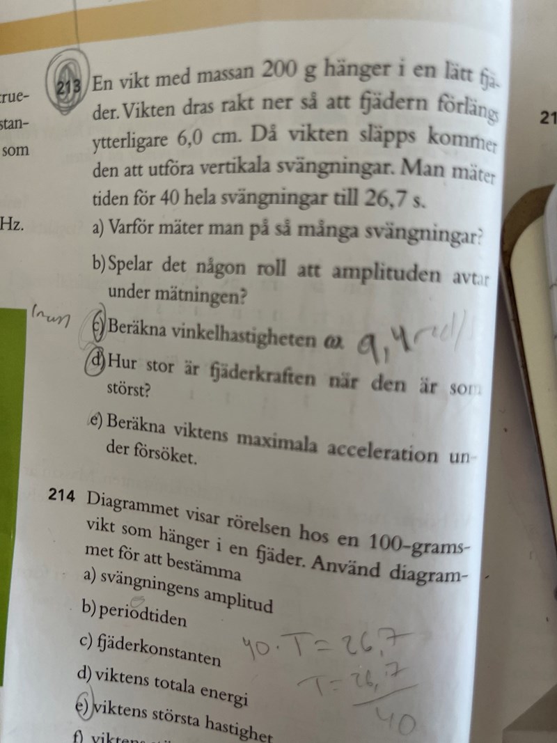 Hur stor är fjäderkraften när den är som störst 213 (d)