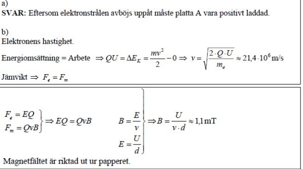 För att elektronerna går rakt horisontellt. Alltså är krafterna från det elektriska fältet och magnetiska fältet lika stora.
