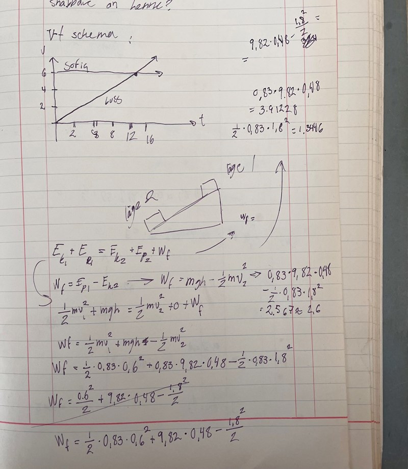 Alltså är friktionsförlusterna Wf = 0.83*9.82*0.48+ 1/2*0.83*1.22-1/2*0.83*1.82