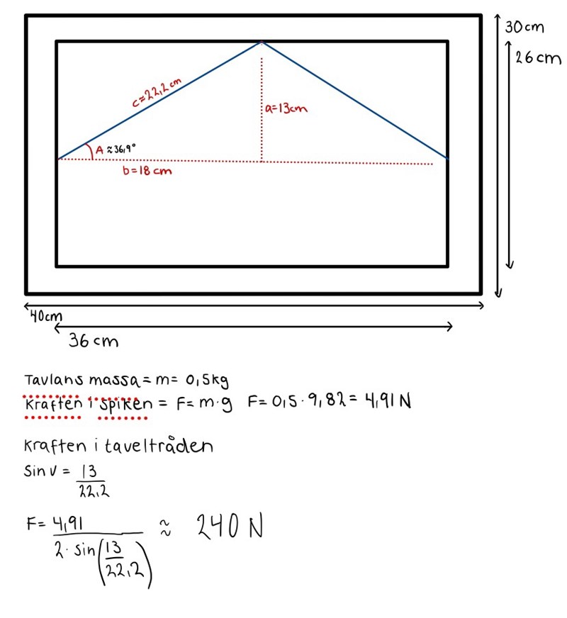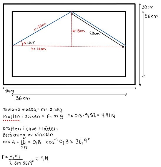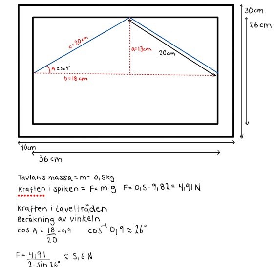 Hur stor är kraften i spiken som håller uppe tavlan samt vilka krafter verkar i taveltråden?
