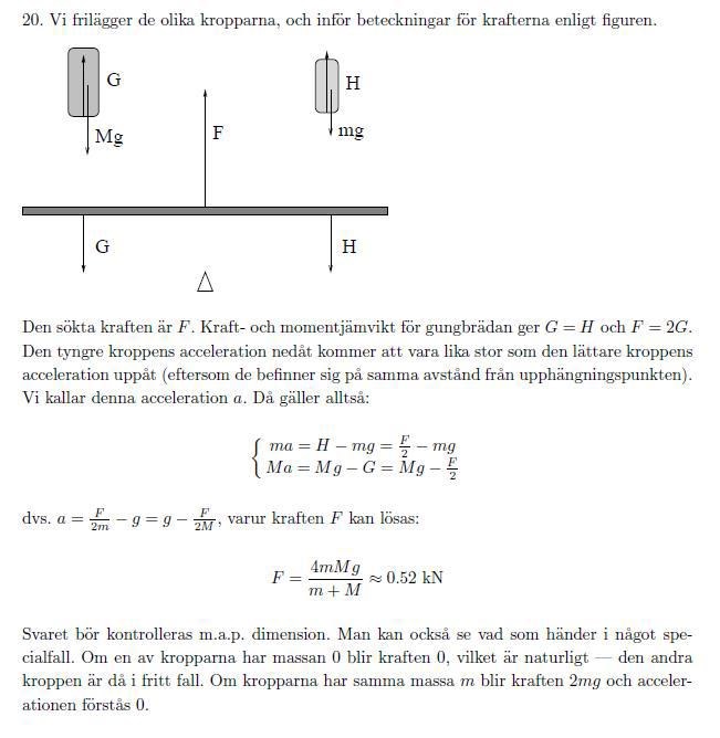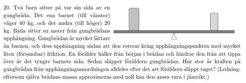 Hur stor är kraften på gungbrädan alldeles efter det att föräldern släppt taget?