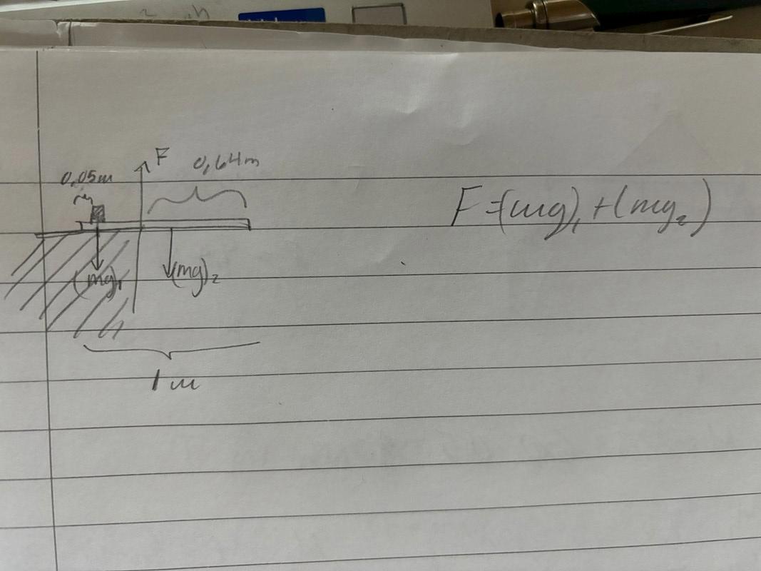 OK, men vad ska jag göra sen, hur räknar jag ut F samt (mg)1 och (mg)2? Jag ska ju räkna ut linjalens massa och jag antar att man ska använda sig av M=M, men sen vet jag inte vilka värden jag ska ha i formeln.