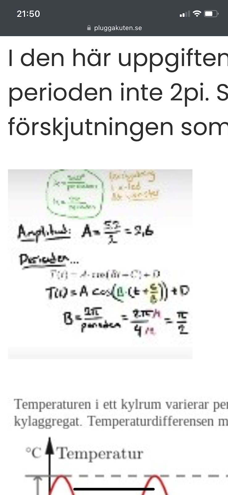 I den här uppgiften från kunskapsmatrisen är perioden inte 2pi. Så man bryter ut B och skriver förskjutningen som c/B)