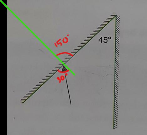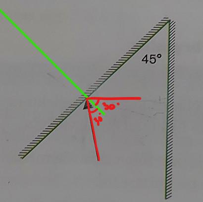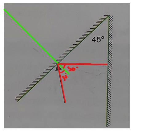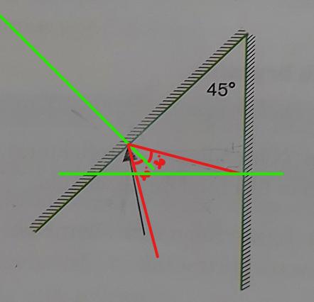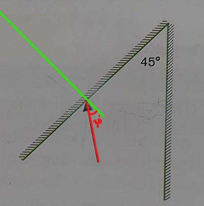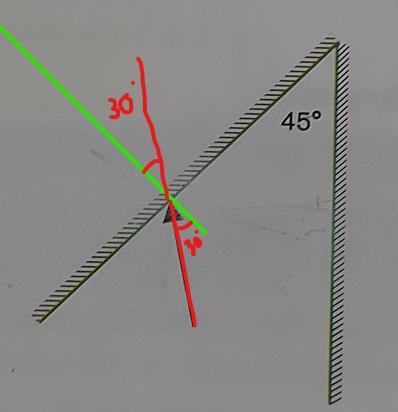 Utmärkt. Rita in normalen till spegeln där ljusstrålen är nu. Det är vinkeln mellan strålen och den normalen som du ska räkna ut.