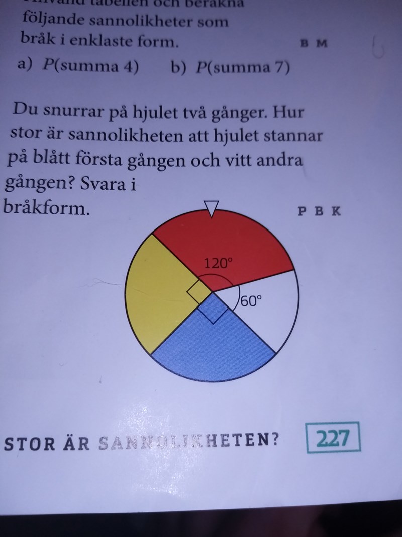 Det röda området utgör 120°/360°= 1/3