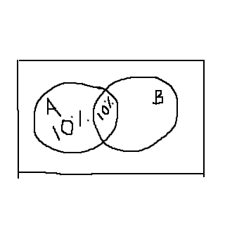 I den ena cirkeln skriver du in A, och i den andra B. Ovalen i mitten är då där A och B överlappar, dvs. 10%. Totalt ska A:s cirkel innehålla 20%, vilket innebär att A:s helt egna område (format som en måne) motsvarar 10%:
