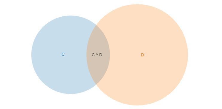 Hur räknar man ut svaret utifrån venndiagrammet om man vill få fram sannolikheten för att både C och D inträffar och för att C eller D inträffar?(det är 30% chans men hur kommer man fram till det genom med hjälp av diagrammet?)