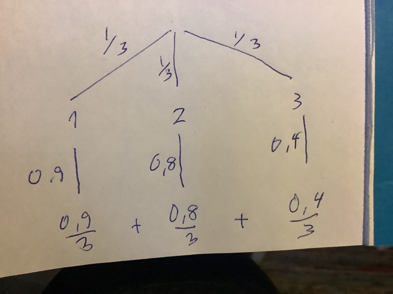 (1/3)*0,9 + (1/3)*0,8 + (1/3)*0,4