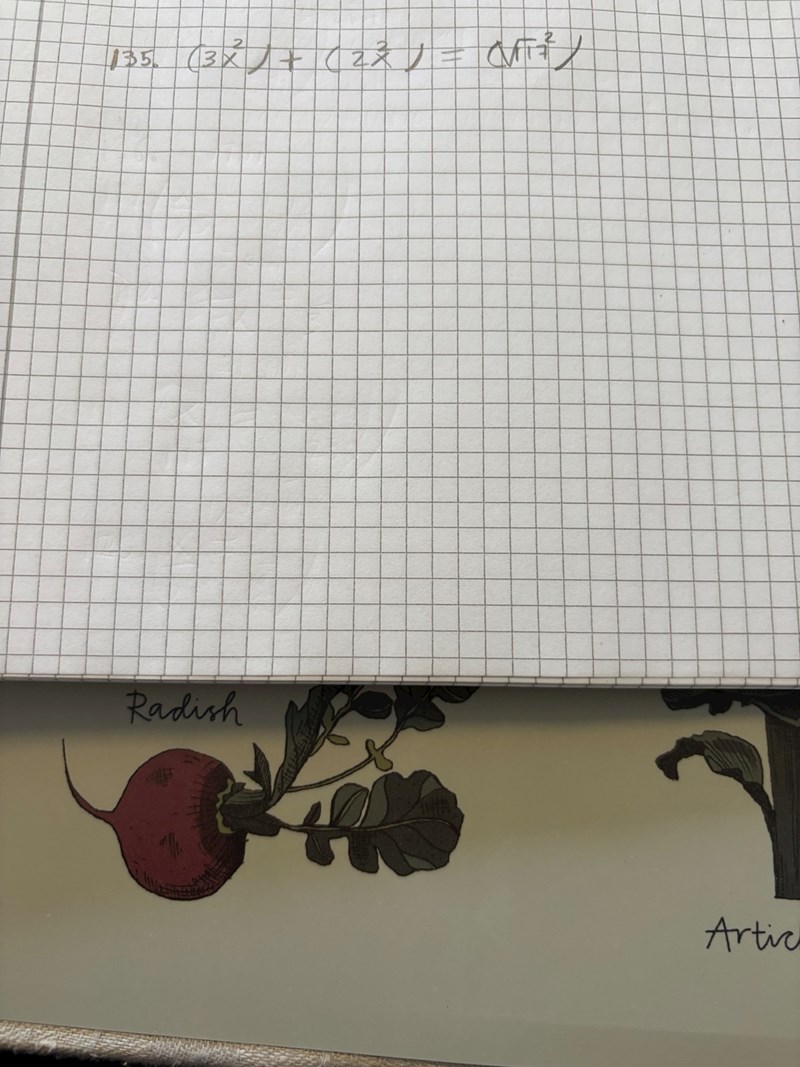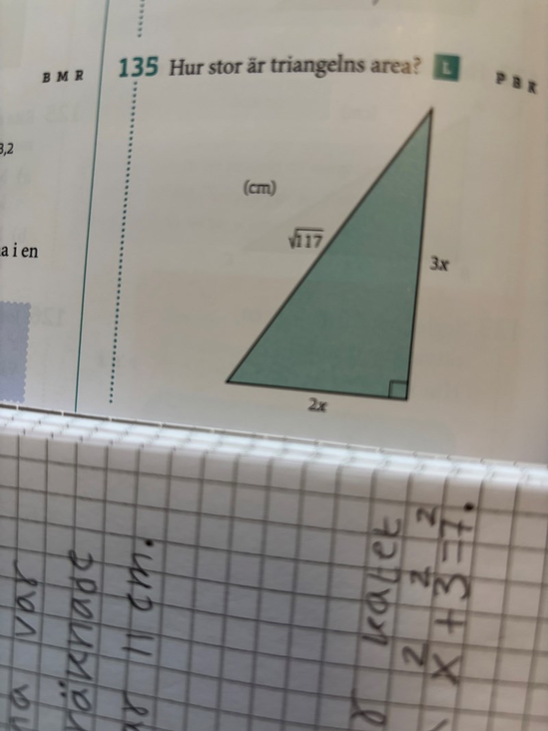 Det är visserligen sant, men i Pythagoras sats ska det stå (3x)2 + (2x)2 = ...