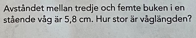 Ja för att förklara hur jag tänkte när jag löste uppgiften. Jag trodde att en buk var hela vågdalen och inte bara toppen. Nu förstår jag varför avståndet blev en våglängd.