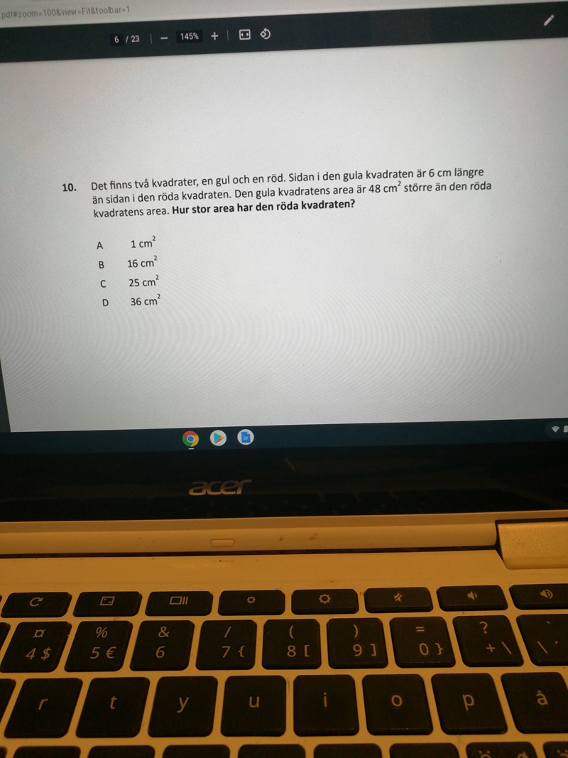 Om sidan på den den gula kvadraten är x+6, vad är då "gula" arean?
