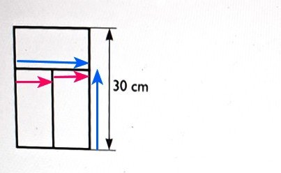 Ser du att det finns 3 st rektanglar? För varje sådan gäller att längden (blåa pilen) är dubbelt så stor som bredden (rosa pilen).