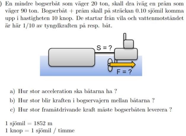 Ingen aning om vilken bok den kommer ifrån fick den som inlämmningsuppgift. Denna tråd hjälpte mig med c) https://www.pluggakuten.se/trad/hur-stor-framatdrivande-kraft-maste-bogserbaten-leverera/. Tack för hjälpen.