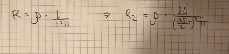Hur stor blir resistansen om längden fördubblas och tvärsnittsdiameter minskar 0,5 - mattehjälp