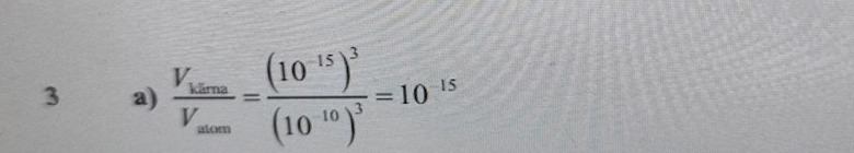 Hur stor del av atomens volym utgörs av atomkärnan?