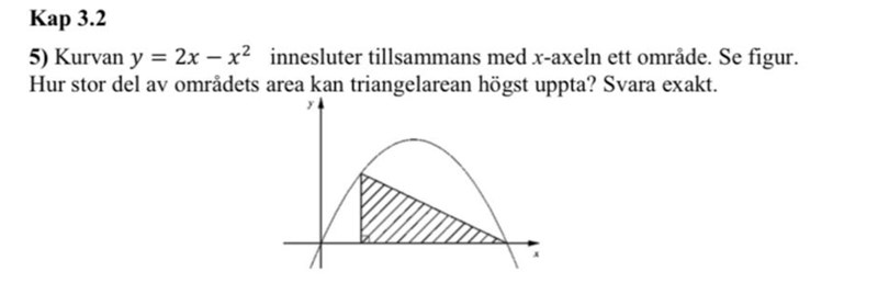 På denna uppgift tänker jag att man ska maximera arean av triangeln, det vill säga hitta differensen mellan den slutna integralen och arean av triangeln.