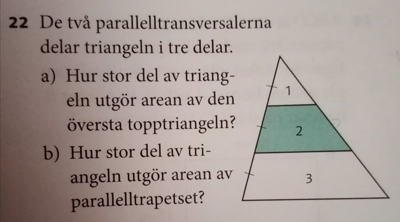 Hur stor del av triangeln utgör arean av parallelltrapetset?