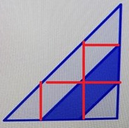 Smaragdalena skrev:Ett annat sätt är att dela in den stora triangeln i små trianglar, som är lika stora som den lilla vita triangeln: Hur många trianglar är det totalt? Hur många av trianglarna är blå?