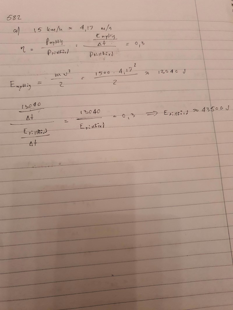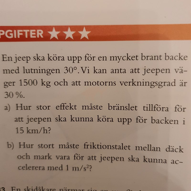 - Vilken effekt krävs för att hålla konstant hastighet i a-uppgiften (dvs för att bilen ska bibehålla sin kinetiska energi)?