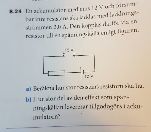 Och nettoeffekten är 12V (för att det är vad ackumulatorn har!?) medans förlusten blir 3V... eftersom det är 3V lägre än spänningskällan?