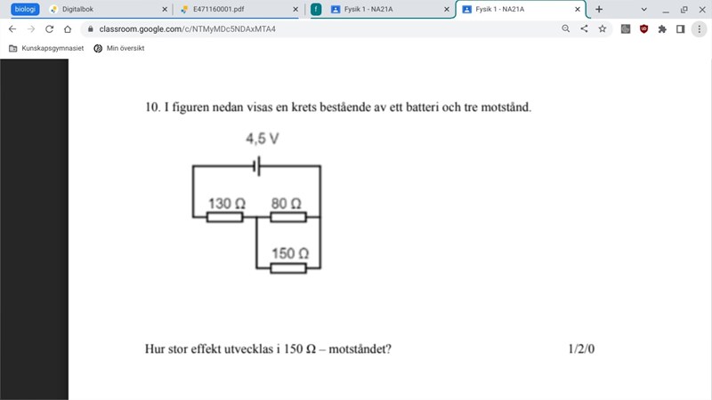Hur stor effekt utvecklas i 150 Ω – motståndet?