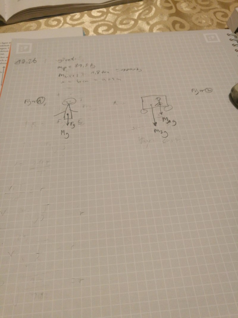 Men i min formelsamling står det ej så.. Jag vet ej varför du får en sån algebra och sen förstår jag ej varför lilla m blev 81,5 kg. Jag definierade stora M som personen och lilla m som 1800