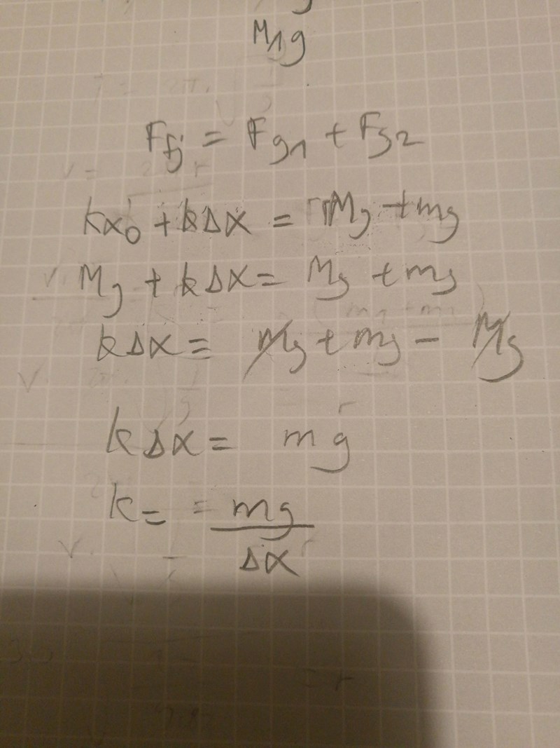 D4NIEL skrev:Hur mycket har fjädern tryckts ihop när personen satte sig i bilen? Och hur stor extra kraft behövs för att motsvara den extra belastningen av personen?