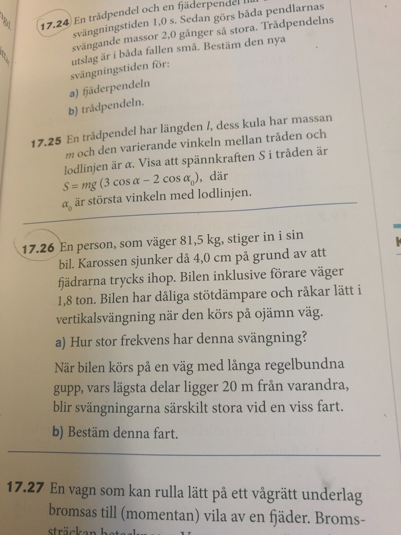 D4NIEL skrev:Formeln gäller den harmoniska svängningen för passagerare + bil.