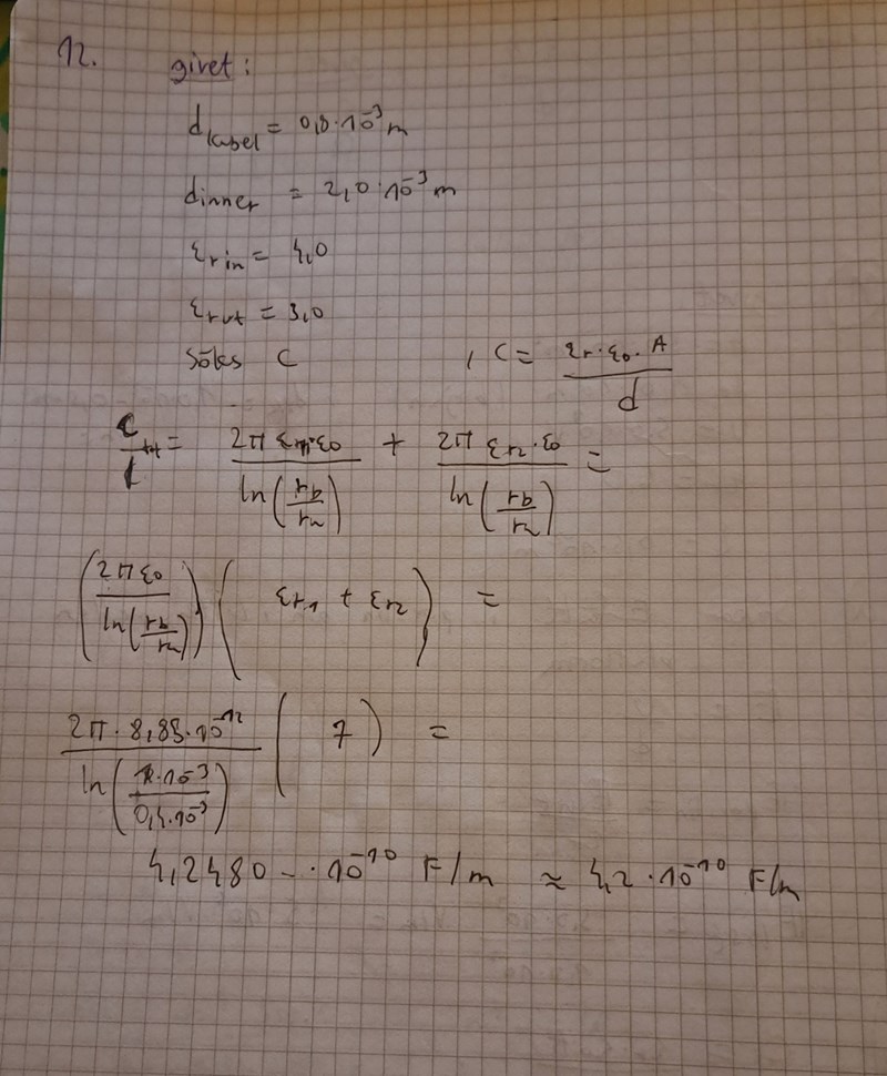 Rätt svar är 0.21 nF/m men varför stämmer inte mitt svar? Hur ska man ha gjort istället?