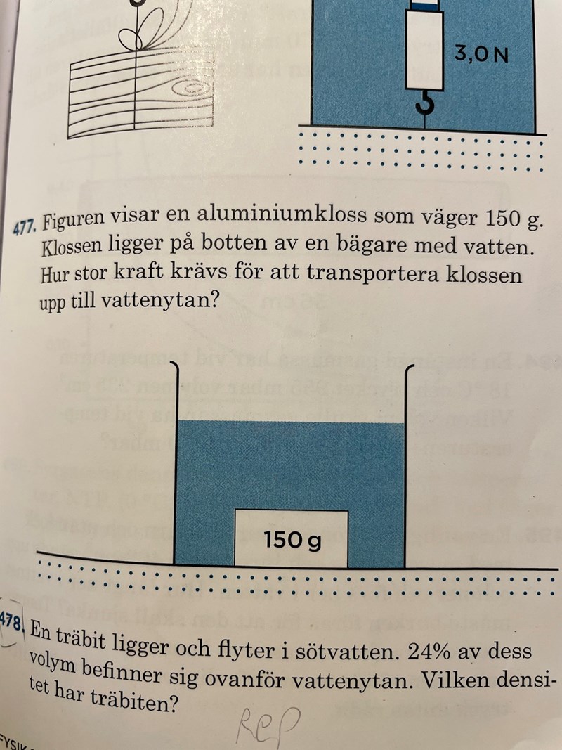 Min fråga är: Varför har man i facit inte tagit hänsyn till normalkraften som uppstår vid bägarens botten? Aluminiumklossen har ju kontakt med botten…