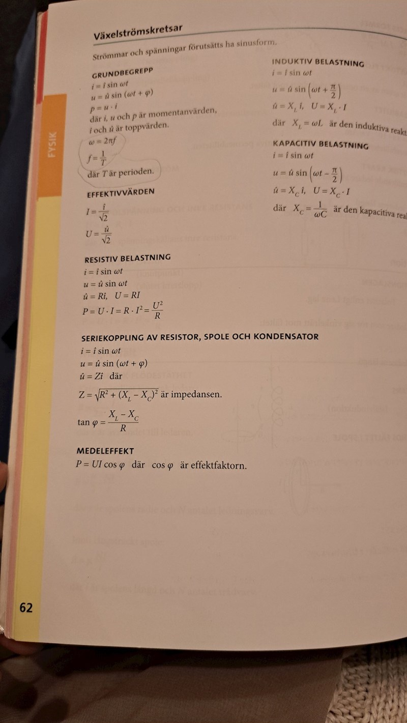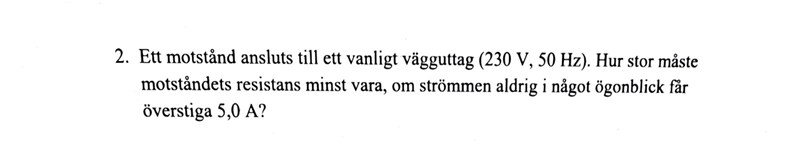 Jaha okej men facit håller ej med gällande värdet på R. Jag får den till 46 ohm.  Jag antar att strömmen de gav oss är toppvärdet och ej effektivvärdet.